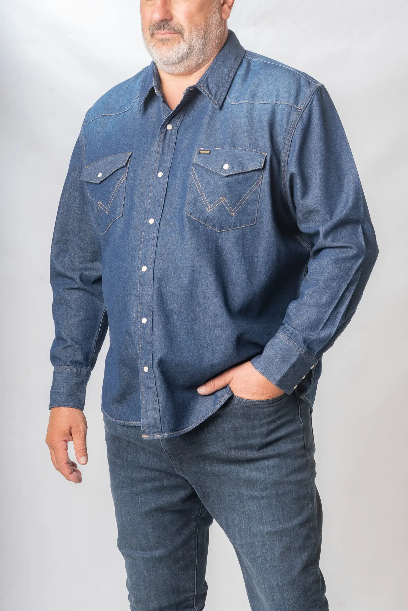 ΠΟΥΚΑΜΙΣΟ ΤΖΙΝ Μ/M WRANGLER ΜΟΝΟΧΡΩΜΟ WESTERN